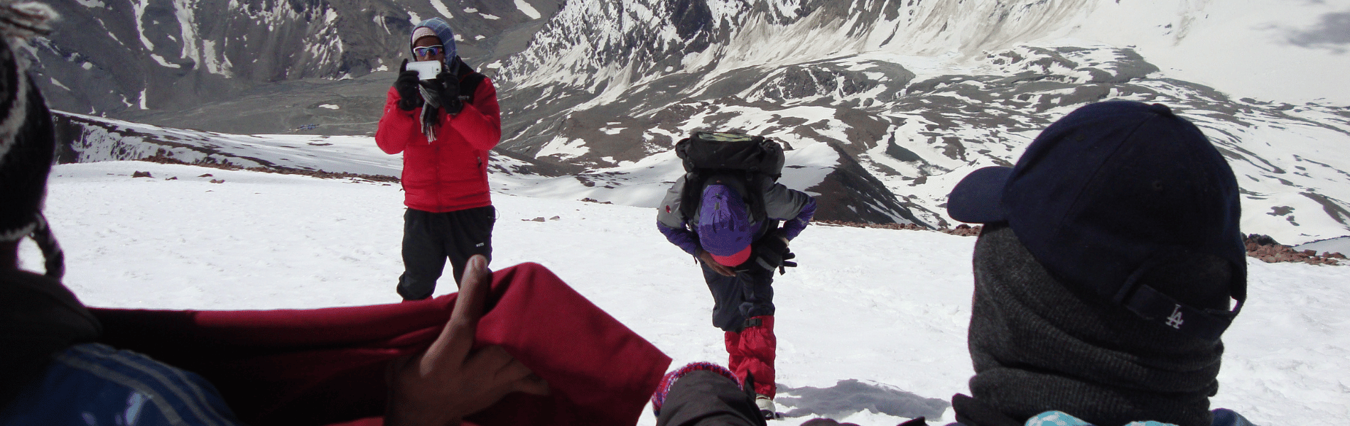 Today exercise ascending and descending on snow with self-arrest, fix rope climbing etc. Come back to camp for lunch. Early dinner. Overnight in tents.