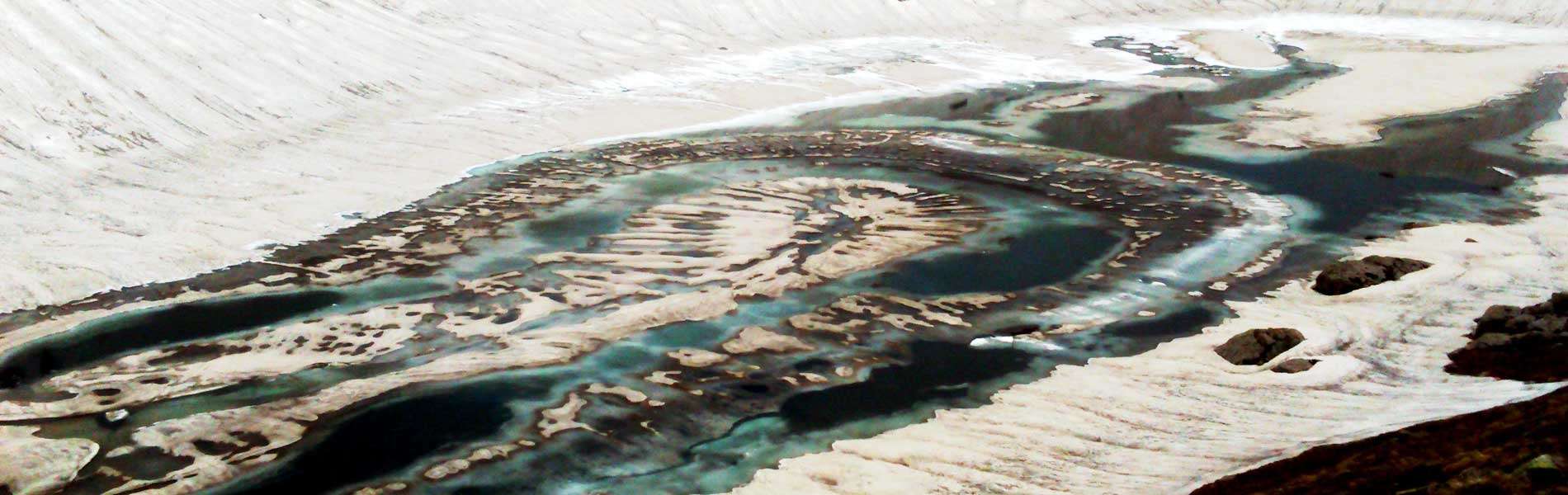 The Mountain of the Broken Lake trek is an exploratory in the Pir Panjal Range of the Himalayas in the Chanderkhani region near Malana, Himachal Pradesh. The trail begins from the oldest village of Kullu Valley – Soil or Soyal Village near Manali and leads up to the open expanse of meadows where 3 massive glacial lakes along with many smaller water bodies can be seen. There are many craters in the area which fill up with rain water and add up to the count of the lakes during the rainy season. This trail is also used by shepherds of Malana village to traverse to the left bank of River Beas. The terrain is snow-packed almost all year round and because of the heavy mist there, the lakes can be rarely sighted. On a good clear day, you can see 3 beautiful crystal clear lakes, separated by short distances. The proximity of the lakes to each other also makes this sighting unique. This trail is not known to many and not even frequented by the locals mostly due to local beliefs.